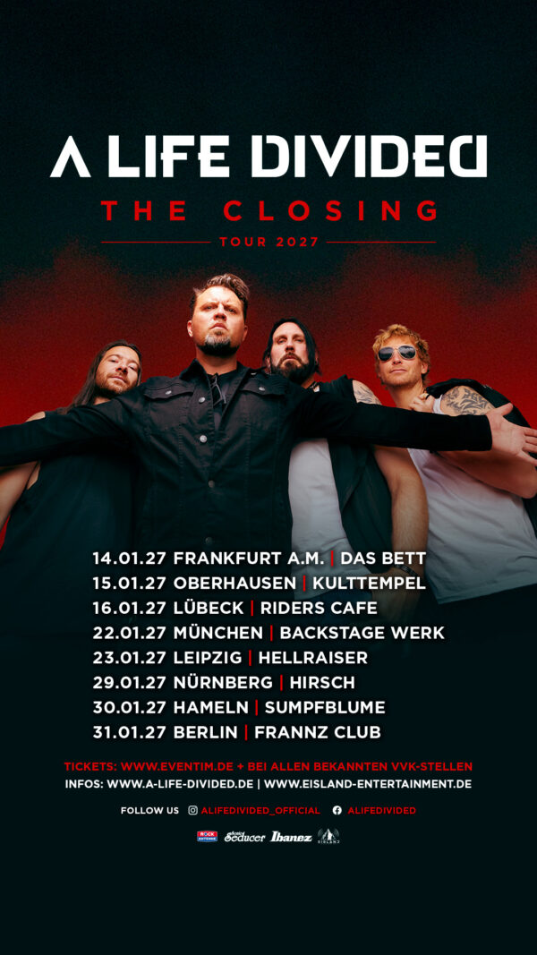 Nach ihrem 2023er Longplayer „Down The Spiral of A Soul“ und dem Coveralbum „re:wind“ (VÖ: 02/26) melden sich A LIFE DIVIDED im Herbst 2026 mit ihrem sechsten Album „The Closing“ zurück.
