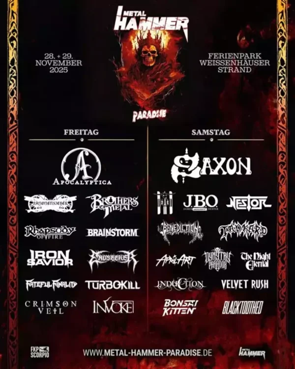 Am 28. und 29. November 2025 wird der Weissenhäuser Strand erneut zum Wallfahrtsort für Metal-Fans aus ganz Europa. Das Metal Hammer Paradise feiert seine nächste Ausgabe – und einmal mehr trifft pure Metal-Energie auf Ostsee-Atmosphäre. Das von Metal Hammer veranstaltete Festival hat sich seit seiner Premiere 2013 zu einem festen Bestandteil der Szene entwickelt und bietet auch 2025 wieder zwei Tage voller Musik, Gemeinschaft und Headbanging.